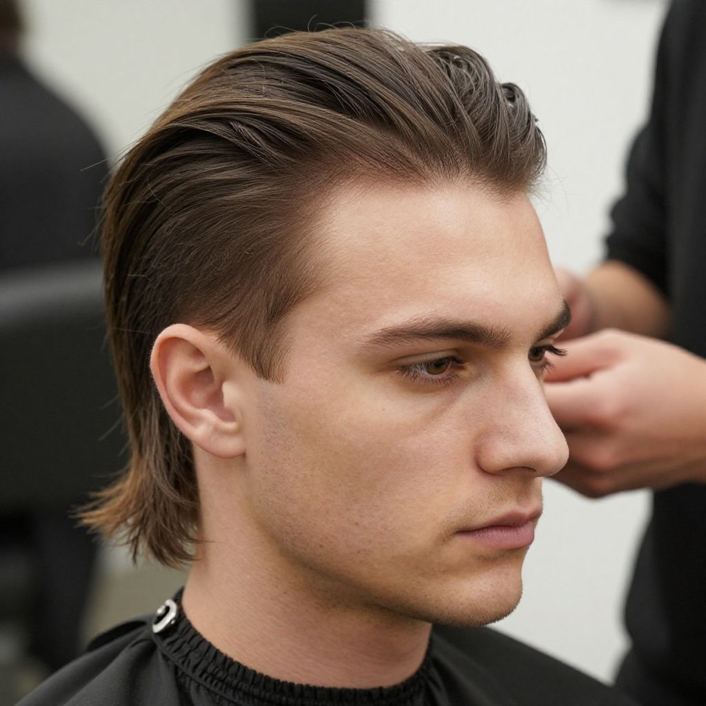 A long faux hawk hairstyle on a fit European man, realistic close-up photography, natural lighting, high detail, professional hair stylist