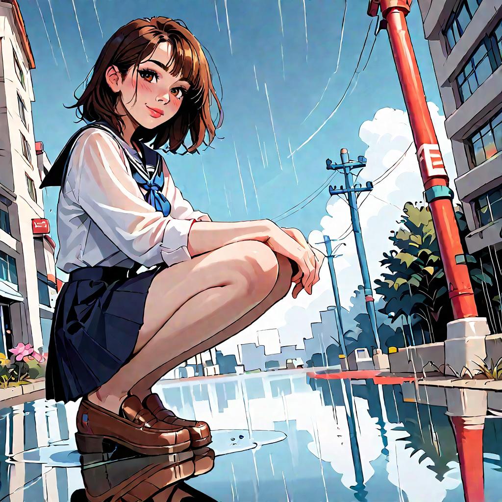 Anime Girl in Red Jacket and White Dress Outdoors