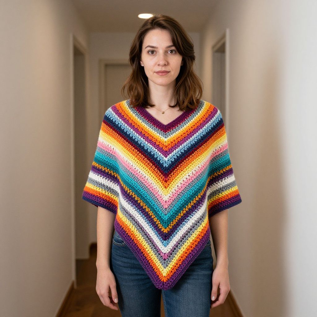 Woman in Multi-Color Crochet Shawl