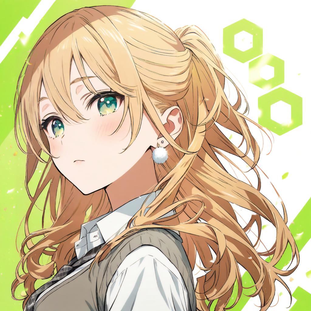 Aizawa ema, vspo!, 1girl, blue eyes, blonde hair, gradient hair, very long hair, blue hair, green hair, long hair, blunt bangs, hair flaps, large breasts, bare shoulders, virtual youtuber, virtual youtuber, earrings, by artist murakami yuichi, animagine