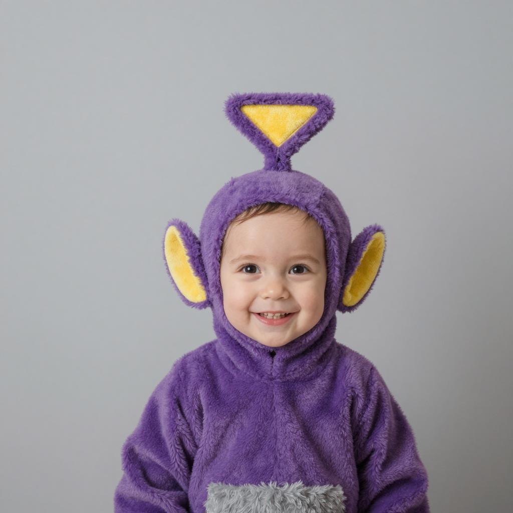 Toddler in Dipsy Teletubbies Costume Outdoors