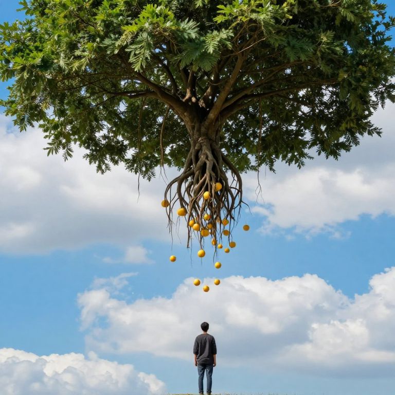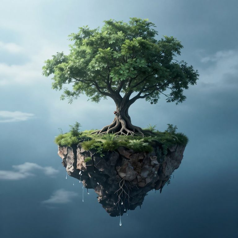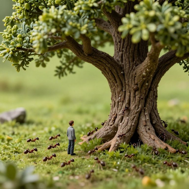 Solitary Figure Amidst Ants and Ancient Tree
