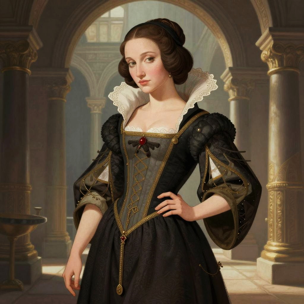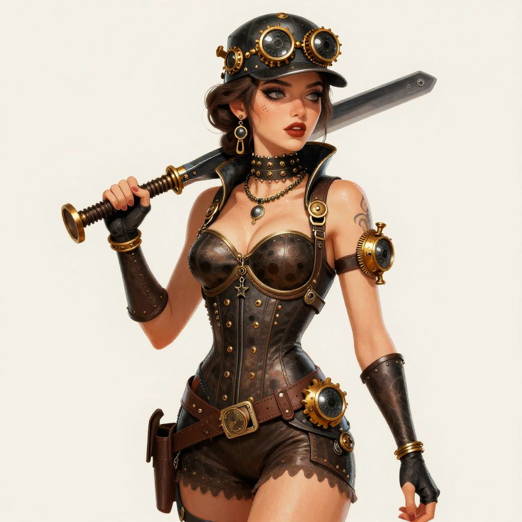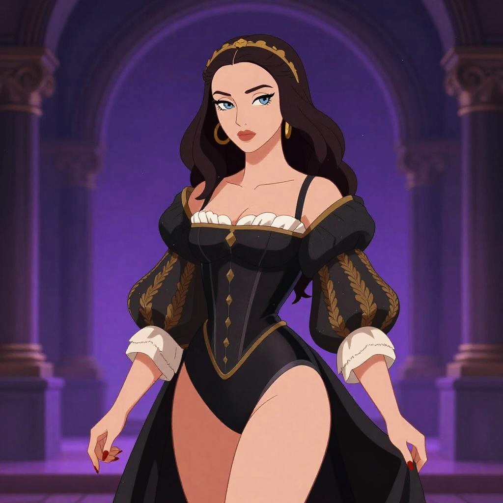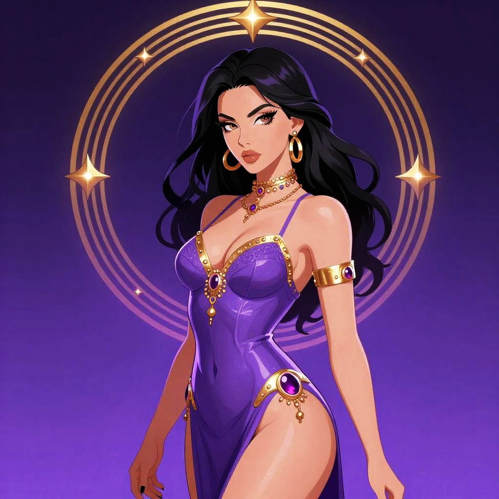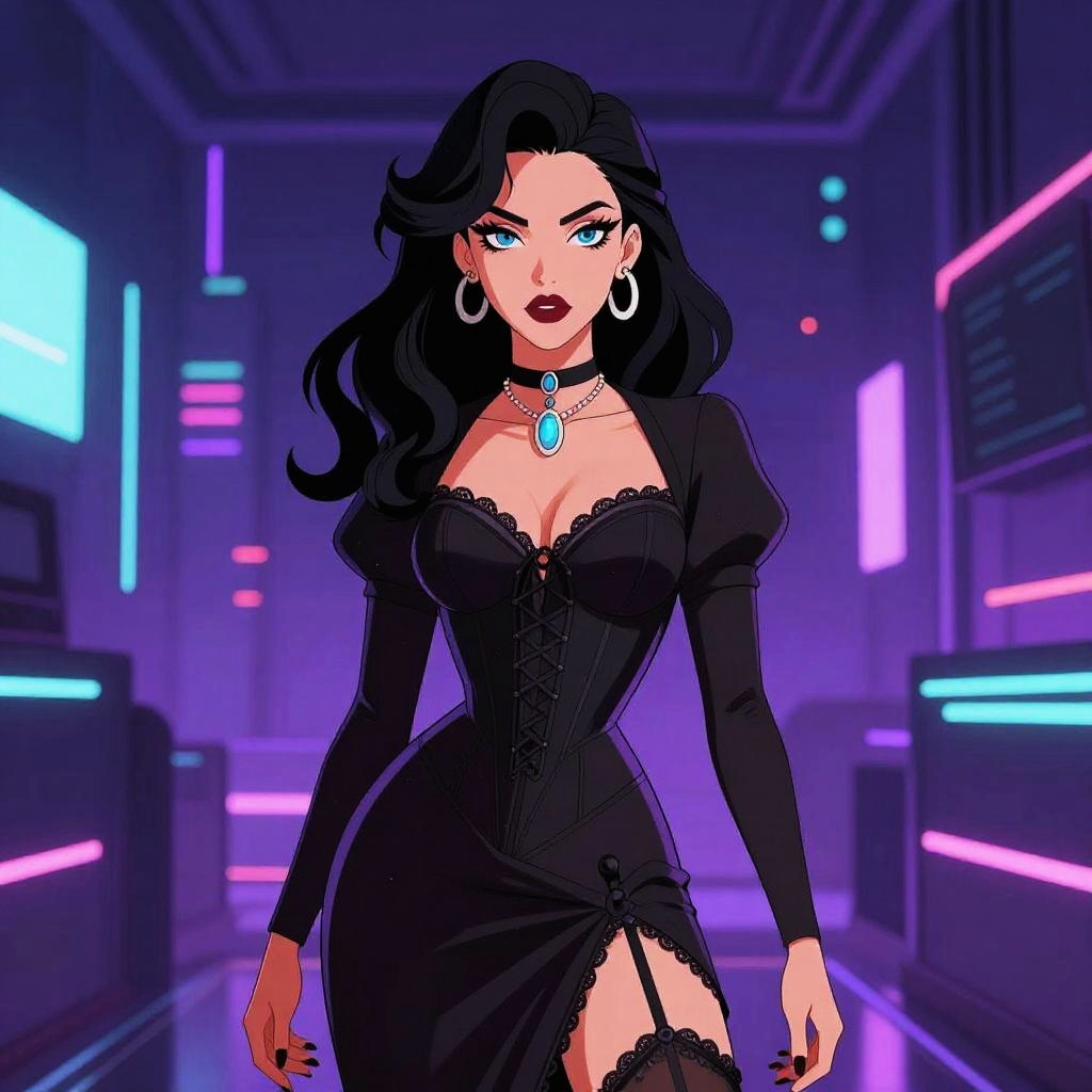 Woman illustration. Cartoon, erotic vibe. Fusion of styles Baroque and Synthwave