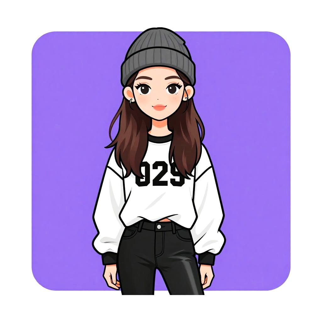 Woman with pretty face and pretty hair. Woman, casual streetwear, oversized plaid shacket in shades of blue and white, drop shoulders, flap chest pockets, distressed gray denim jeans, black heeled ankle boots, wide-brimmed black hat, choker necklace, white top underneath, white background with light studio setting. --sref 1467