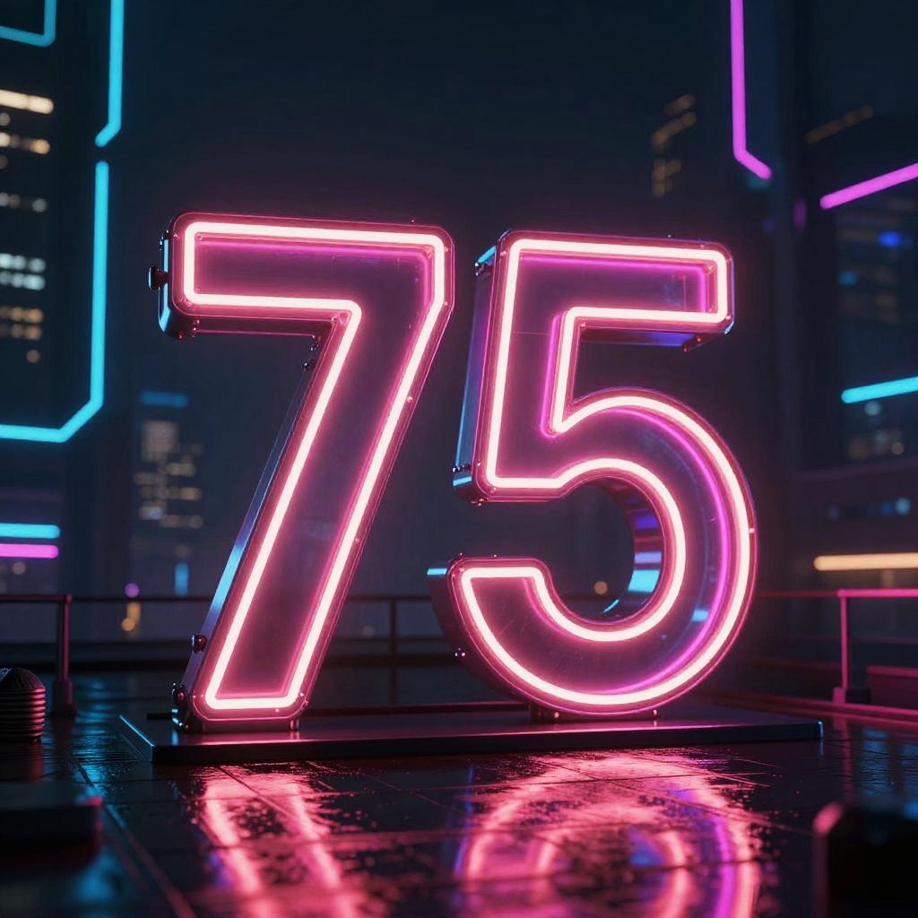 A digital CGI image depicting a neon-lit, futuristic display screen showing the number "15" in large, glowing blue and white numbers. The screen has a grid-like background with various technical details and is suspended above a circular, illuminated base. The background is a dark, cyberpunk cityscape with blurred, colorful neon lights from tall buildings. The scene has a high-tech, sci-fi vibe with vibrant blue and purple hues. The image emphasizes a futuristic, technological atmosphere.