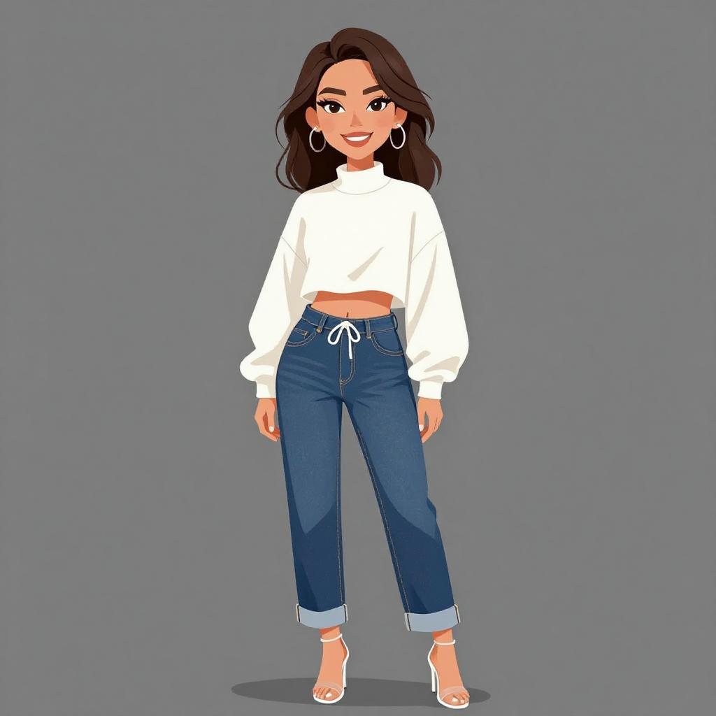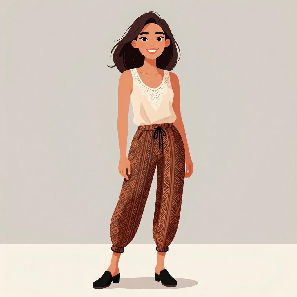 Chic Smiling Woman in Casual Outfit