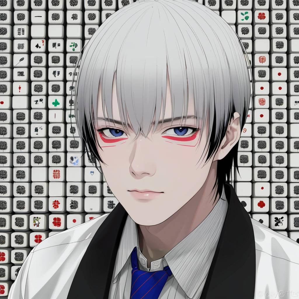 Akagi shigeru, fukumoto mahjong, 1boy, short hair, white hair, grey hair, medium bangs, collared shirt, by artist kawai ritsu (rits meg), anime