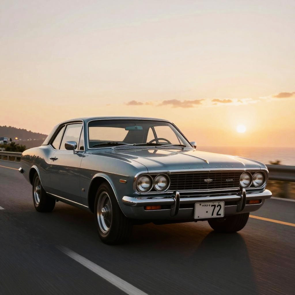 Vintage Coastal Cruise at Sunset