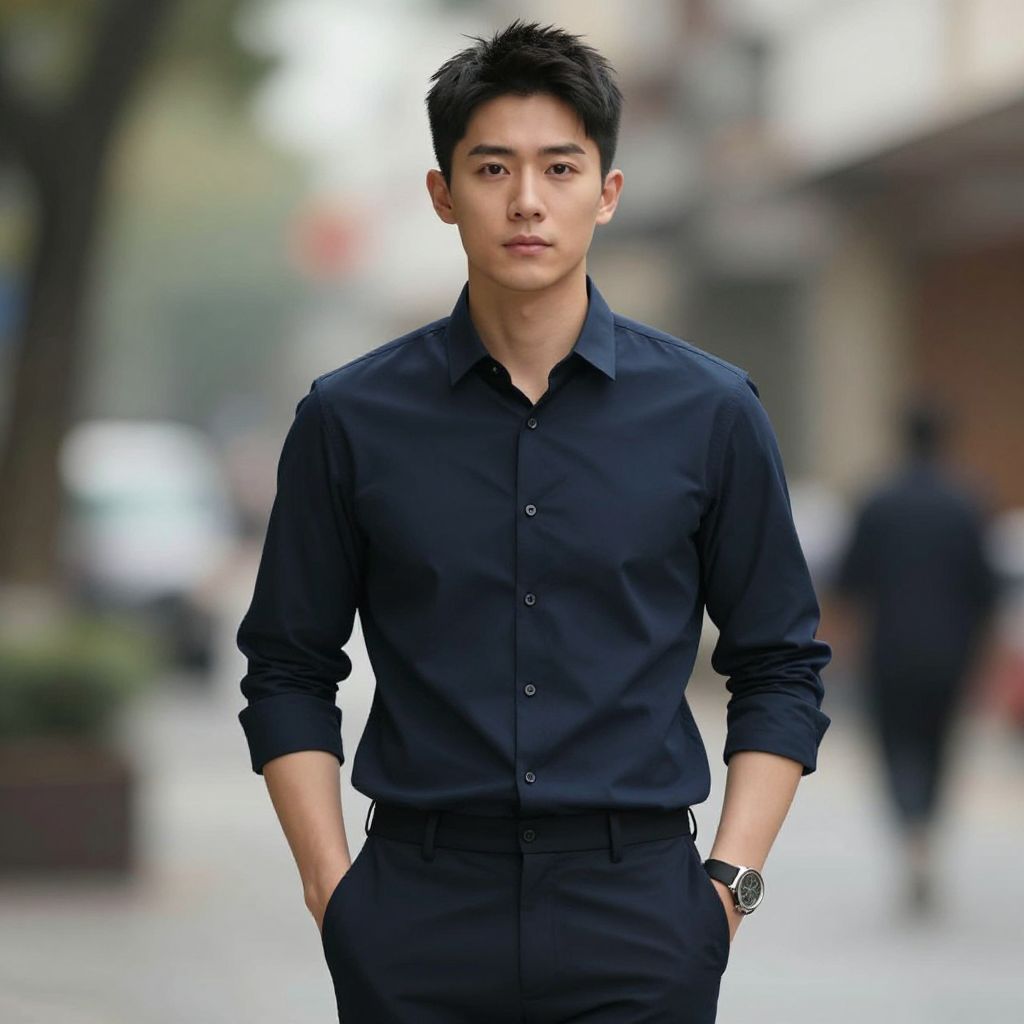 "black formal dress man, 1boy, solo, male focus, facial hair, blurry background, black hair, looking at viewer, realistic, shirt, necktie, blurry, mustache, outdoors, beard, suit, formal, black eyes, asian, upper body, jacket, black jacket, collared shirt, black shirt, short hair, black necktie, from side Realistic photo of casual sexy person with pretty face"