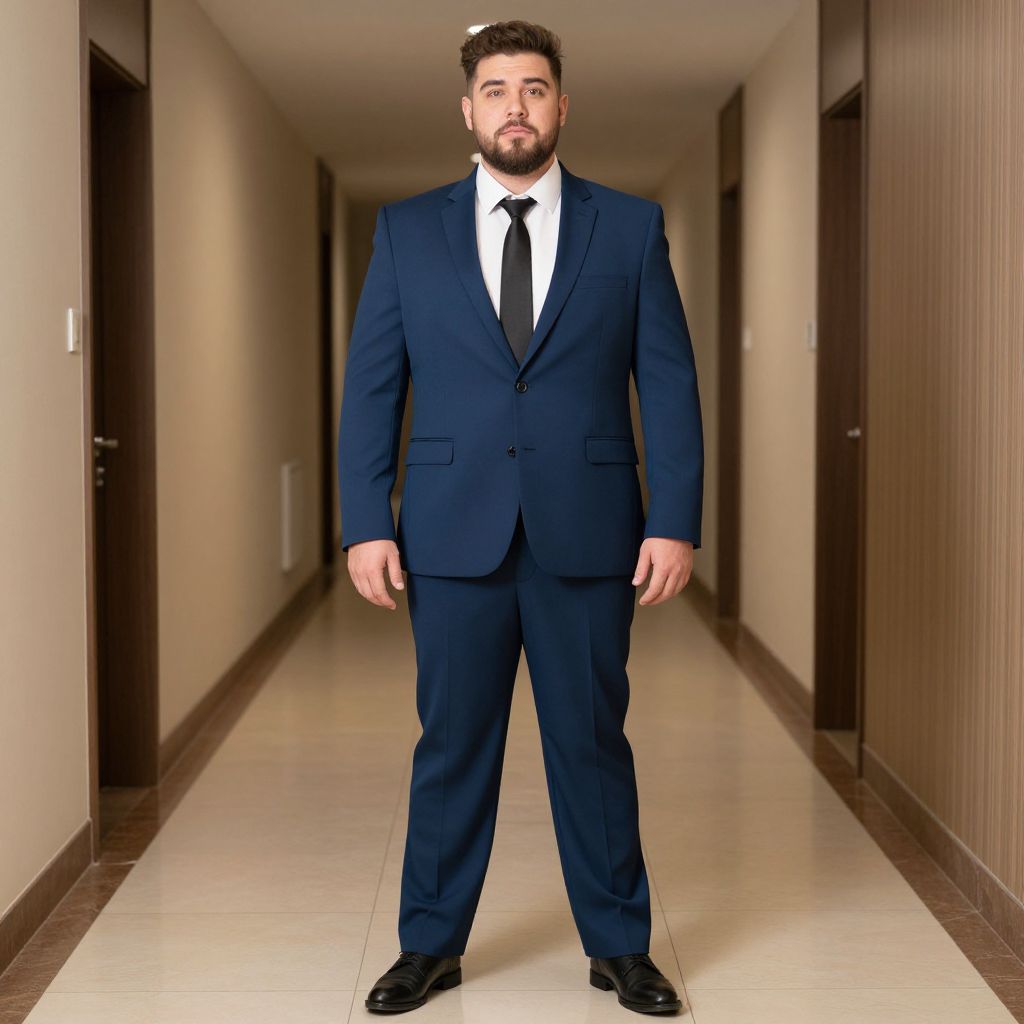 Plus Size Blazer Costume, man in a suit standing in a hallway