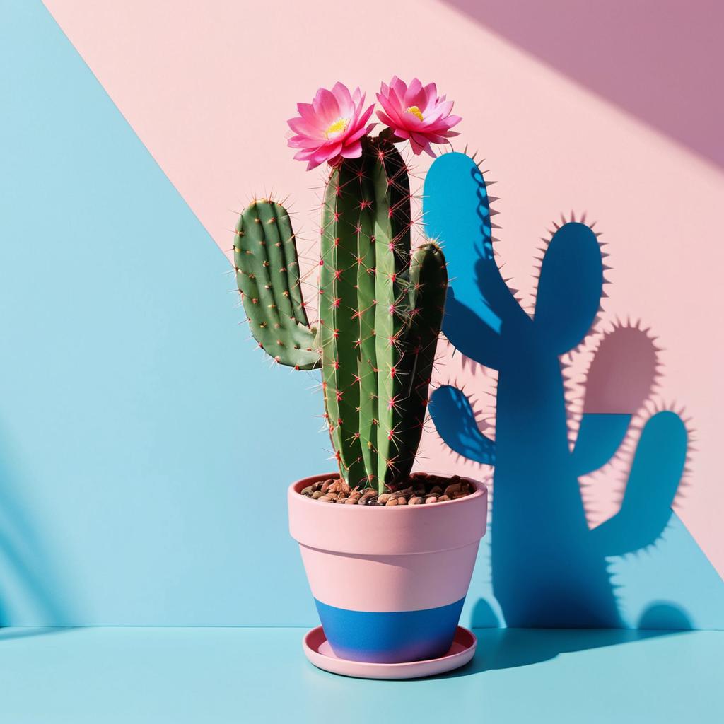 No humans, shadow, plant, pink background, leaf, flower, potted plant, flower pot, still life, food, signature, food focus, simple background, cactus, vase, blue flower, animal