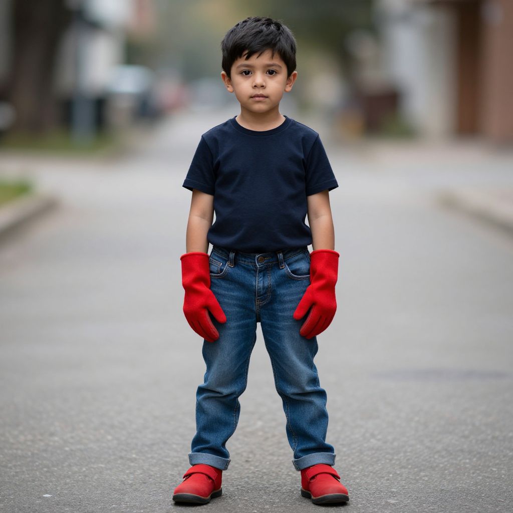 Boy in Red Gloves and Denim