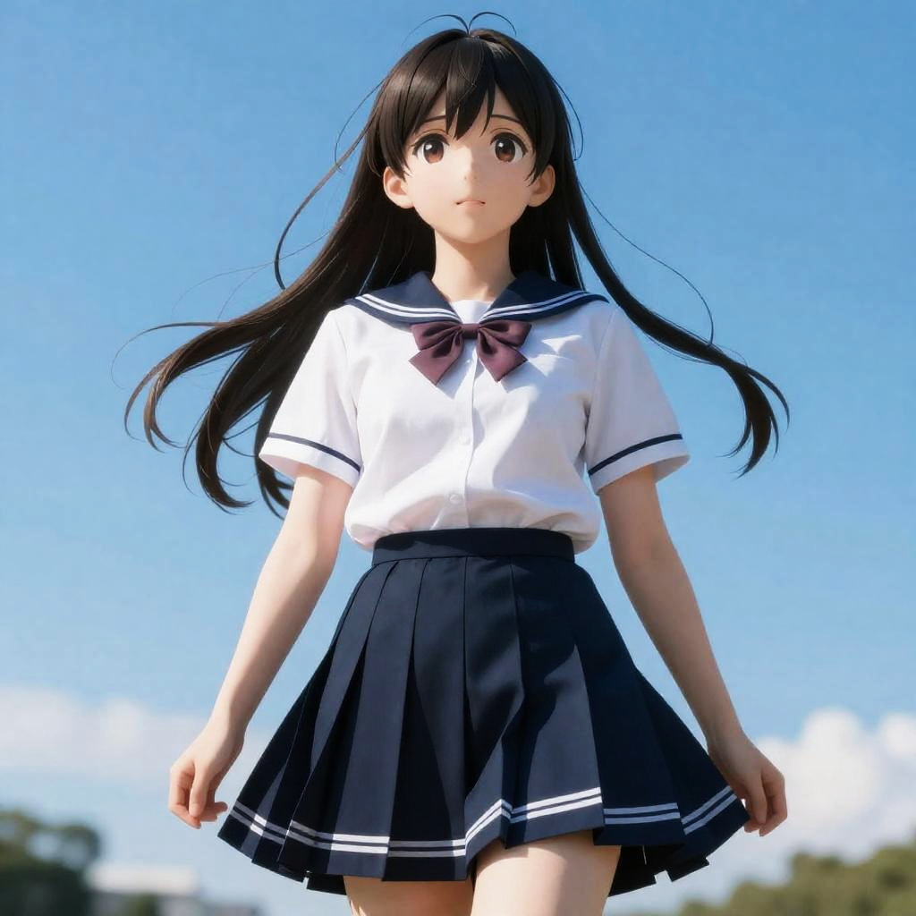 1girl, solo, koharu \(blue archive\), serafuku, skirt, best quality, beautiful color, beautiful, detailed, cinematic lighting, best lighting and shadow, amazing quality, blue sky, depth of field