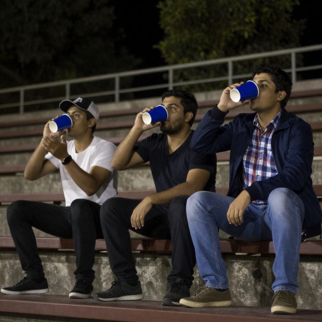 Three Men in Blue Jerseys Behind Fence