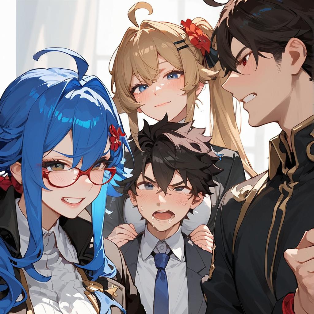 Score_9, score_8_up, score_7_up, source_anime, 5girls, office, office lady, around table, table, food, beverage, burger, starbucks, shirt, yae miko, smirk, raiden shogun (genshin impact), yoimiya \(genshin impact\), FrierenBase, green eyes, white hair, long hair, twintails, earrings, eating burger, keqing \(genshin impact\), TsunomakiWatame, sheep girl, ahoge, happy, sheep horns, blonde hair