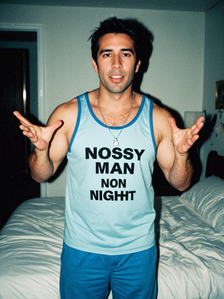 Man in One Night Stand Costume, photorealistic humorous cosplay portrait
