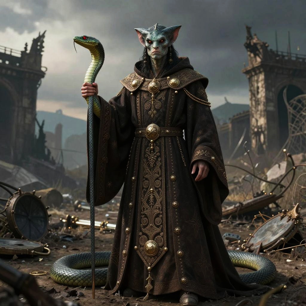Yuan-ti Cleric Fashion Editorial, Serpent Elegance