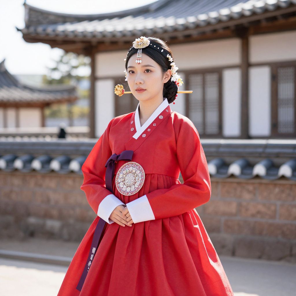 Woman in Pink Hanbok Costume