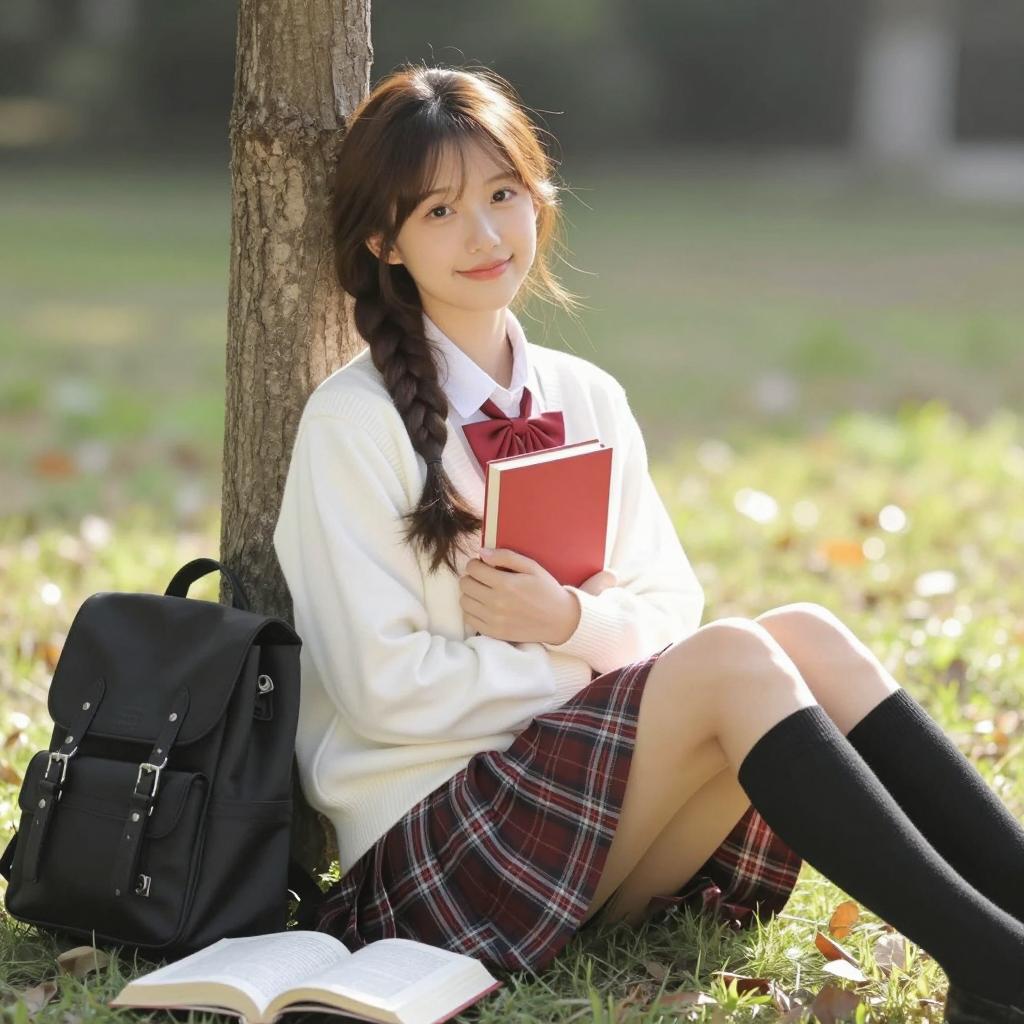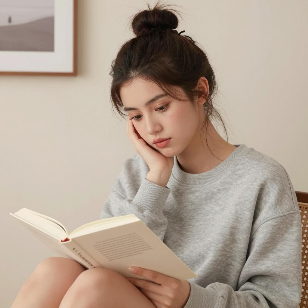 Young Woman Relaxing Outdoors with Book