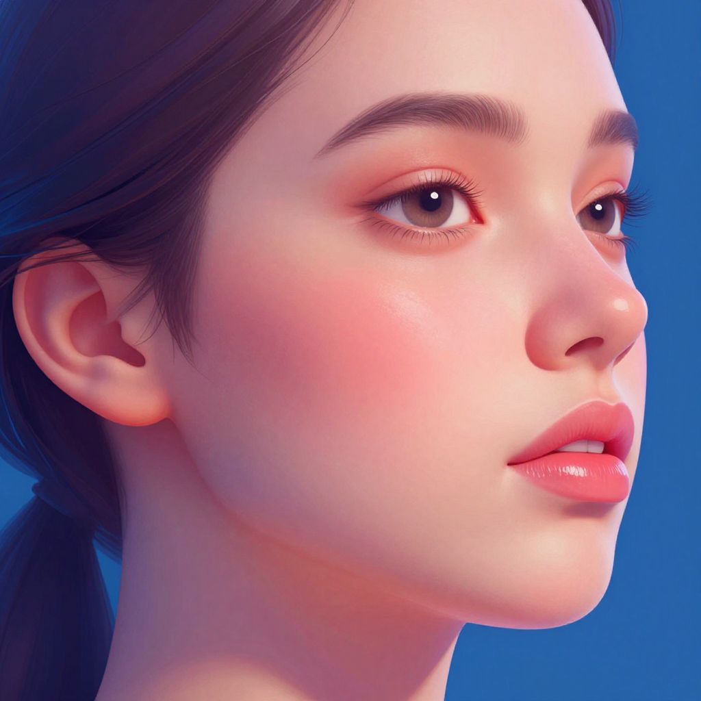 Buccal fat removal filter visualization as a digital art style, transforming a chubby face into a slimmer one, vibrant colors, smooth gradient lighting, surreal yet elegant touch, highlighting the cheek reduction, artistic and modern approach