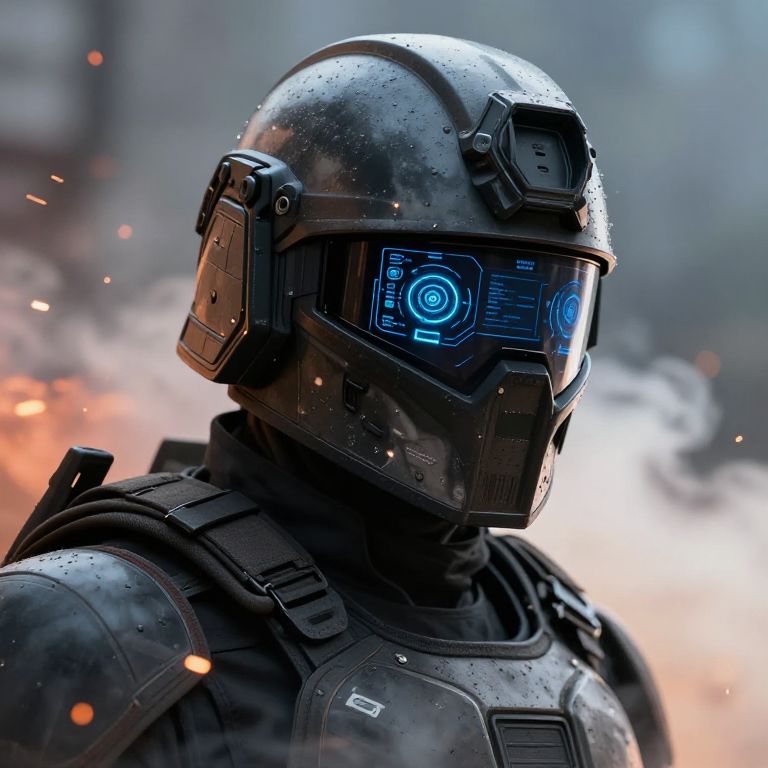 Armored Tactical Combat Suit at Sunset