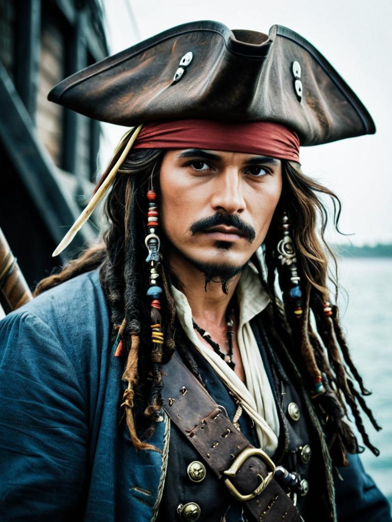 Photorealistic Pirate Man in Jack Sparrow Costume