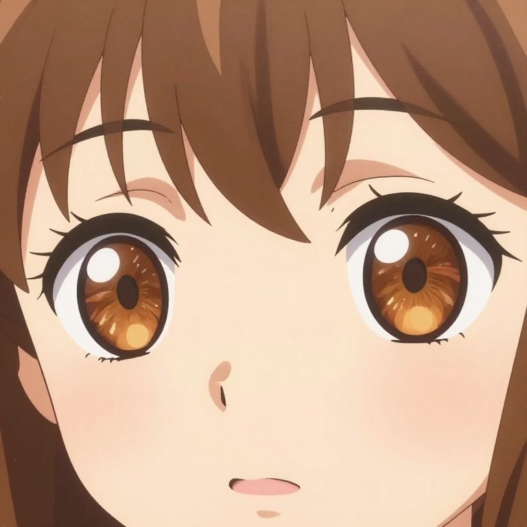 Anime eyes brown, close-up portrait of a character with large, expressive brown eyes, shimmering with detailed highlights and reflections, soft eyelashes, vibrant warm tones, surrounded by a gentle glow, anime style, highly detailed digital art