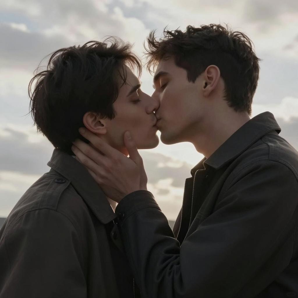 Passionate Embrace of Two Men