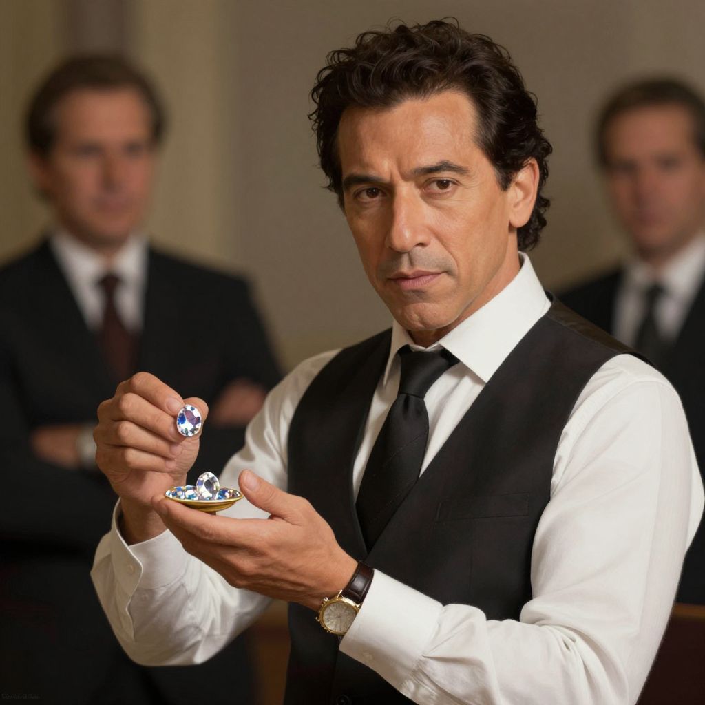 Danny trejo, cinematic, as a secret agent, holding a gems, elegant, highly detailed, digital painting, artstation, smooth, hard focus, illustration, art by jessica rossier and and brian froud