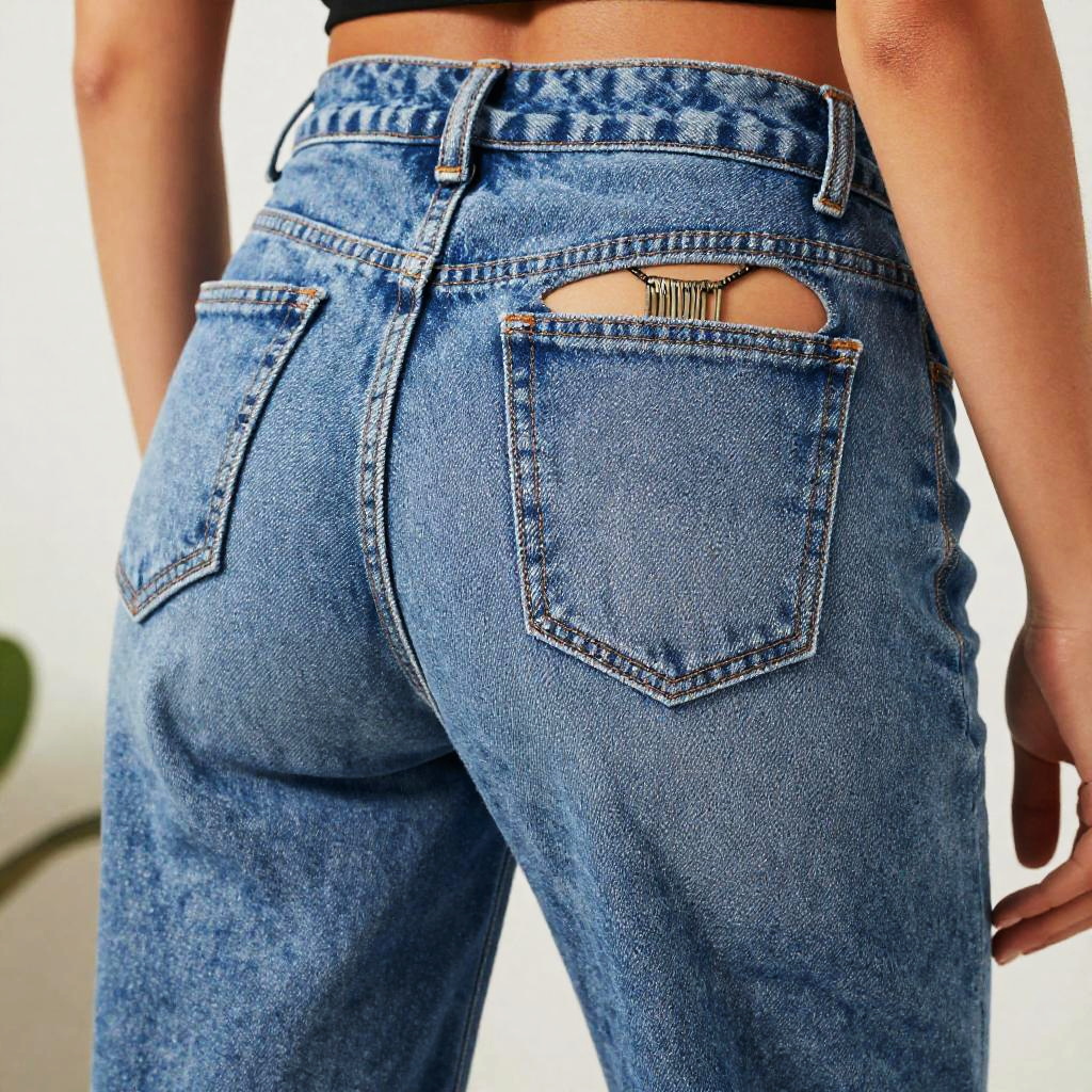 Avant-garde g string jeans concept, futuristic denim with neon g string elements glowing, cyberpunk city night, vibrant colors, intricate details, dynamic fashion editorial style