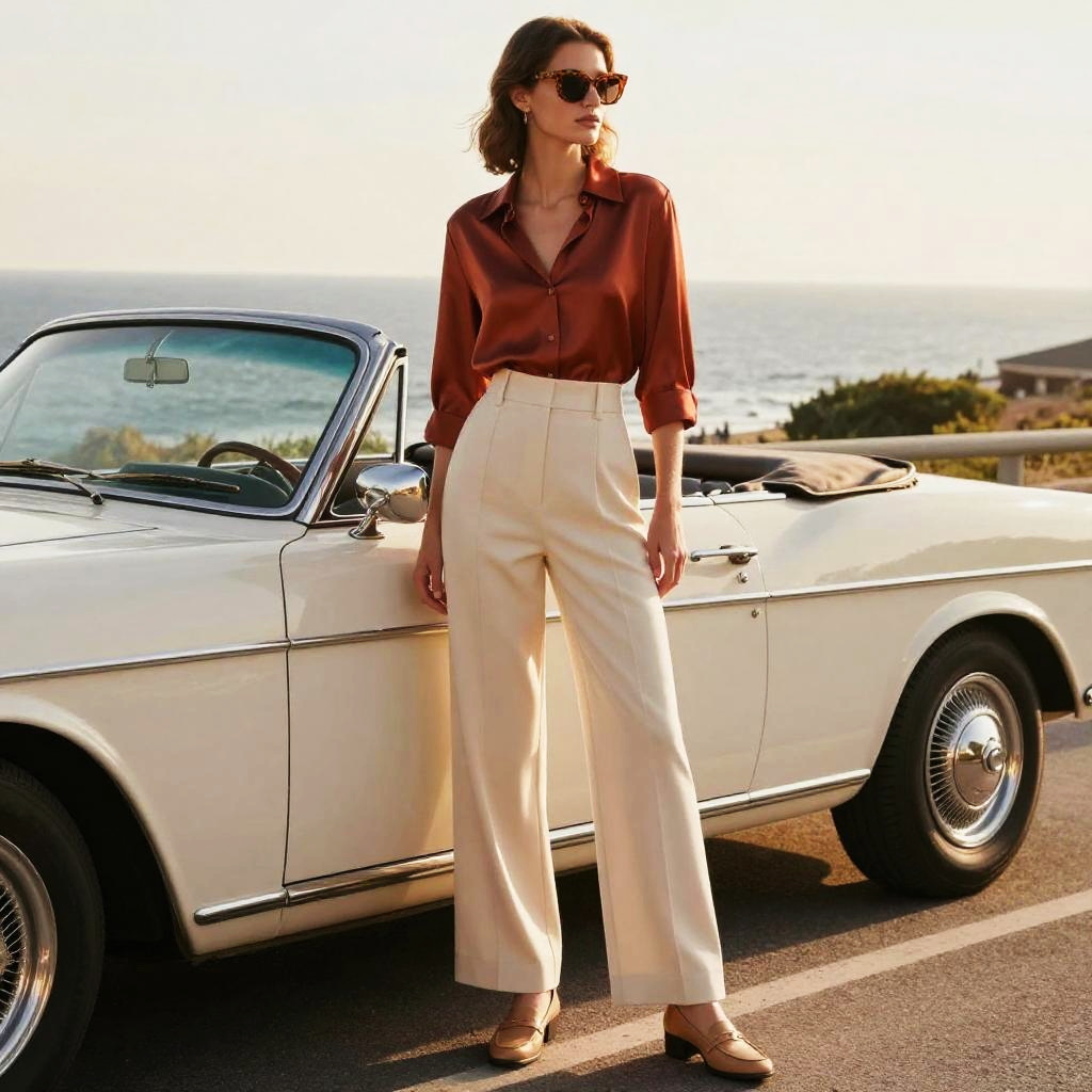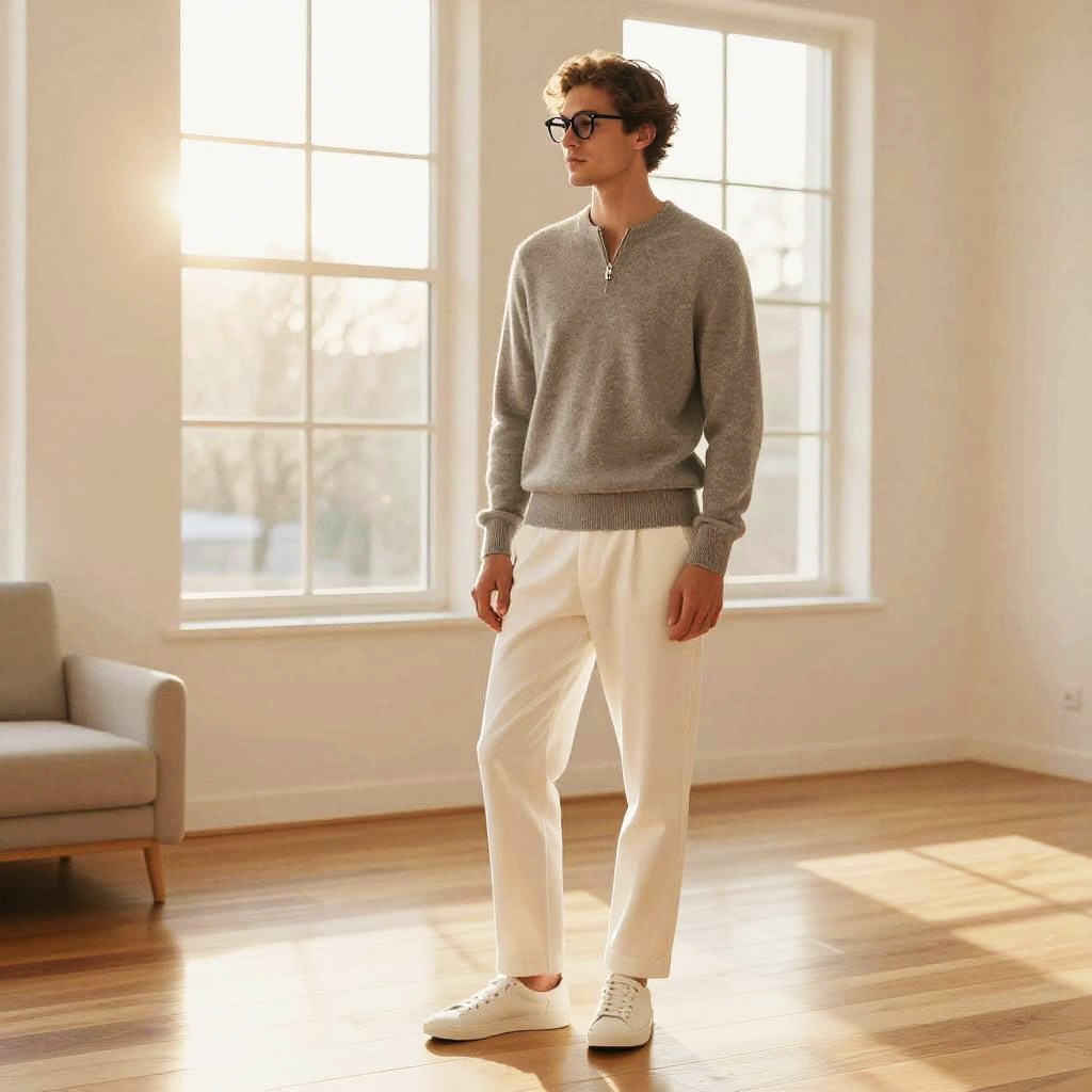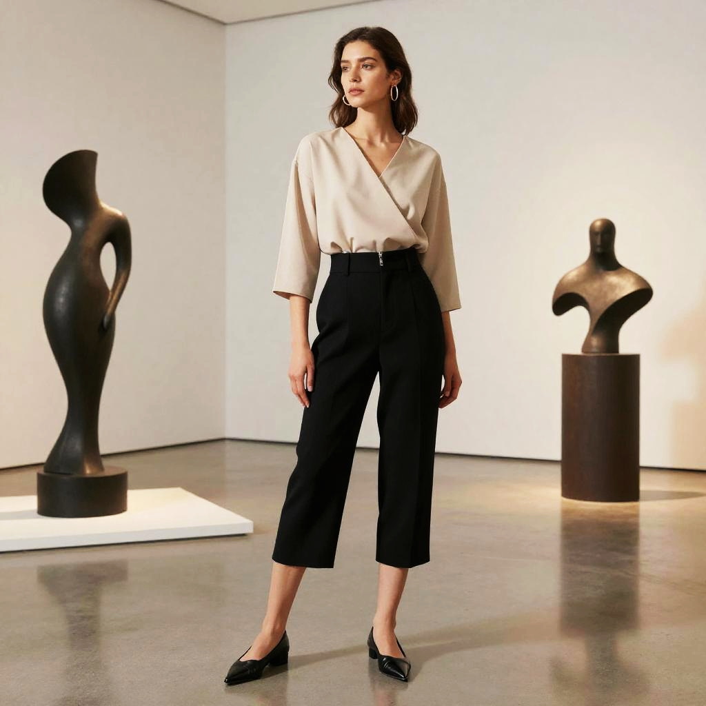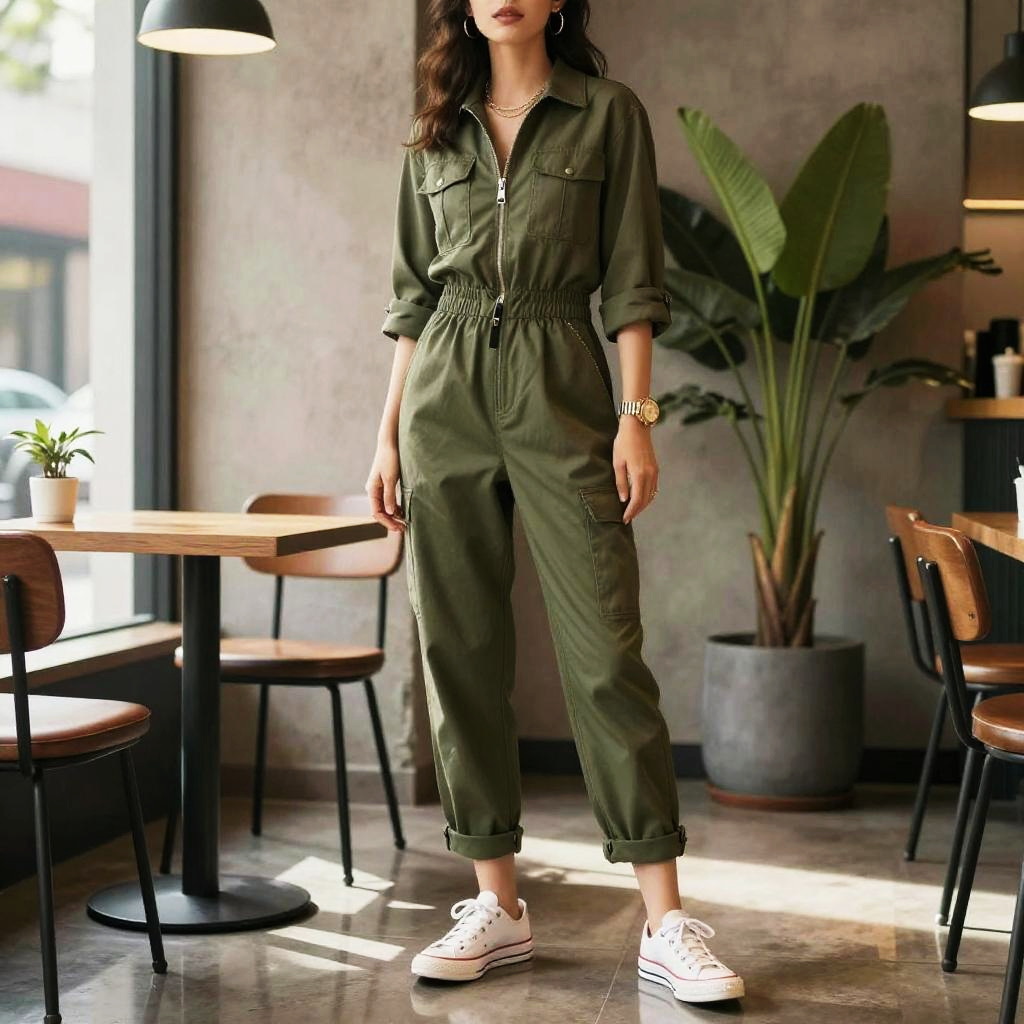 Fashion editorial scene in botanical greenhouse with lush tropical plants and natural sunlight filtering through glass roof, featuring elegant woman in flowing ivory chiffon dress with lace inserts, ankle length, nude strappy sandals, pearl stud earrings, soft diffused daylight with warm highlights and gentle shadow play; photorealistic, ultra detailed fabric and metal textures, zipper glint, clean composition, full body framing, graceful posture, subtle film grain, crisp edges, high contrast, refined color grading, polished floor reflections, modern sophistication.
