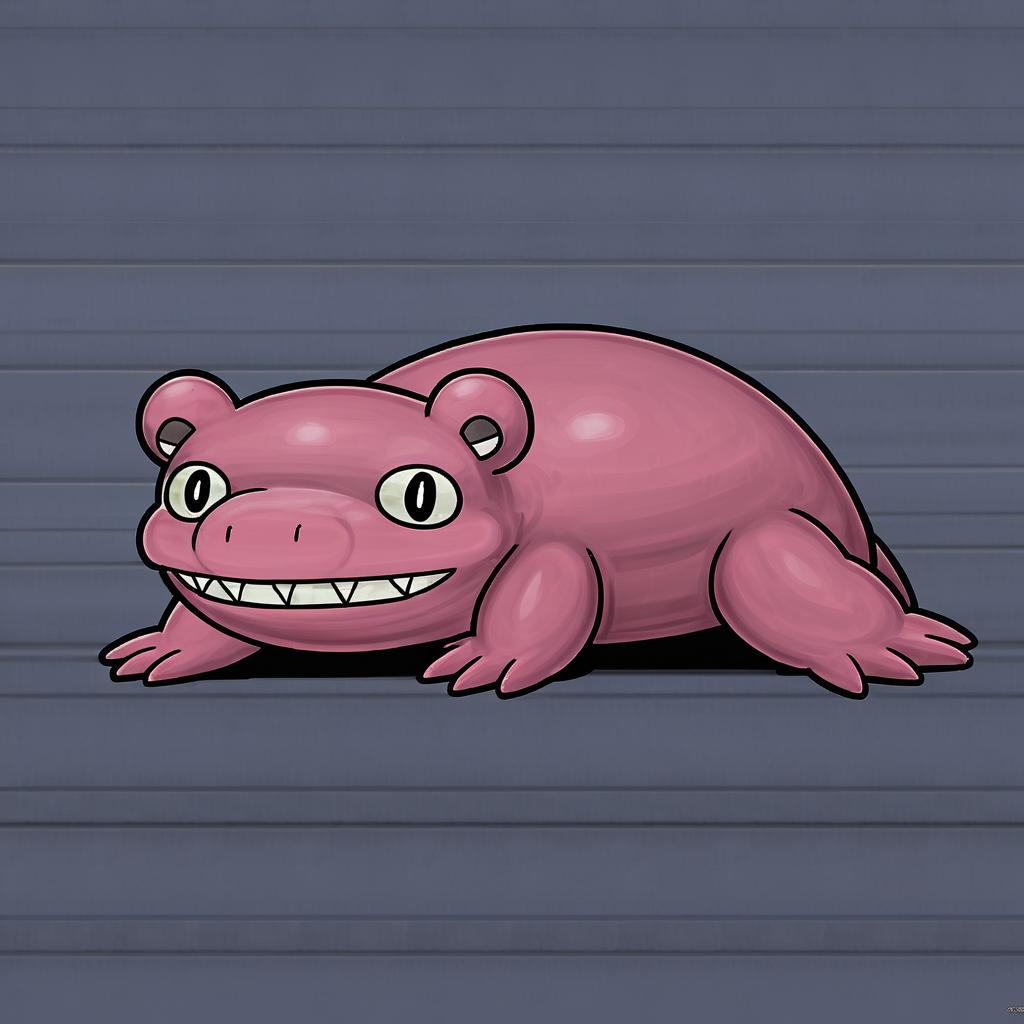 Slowpoke, pokemon, no humans, fangs, pokemon (creature), by artist gomashio (goma feet), anime