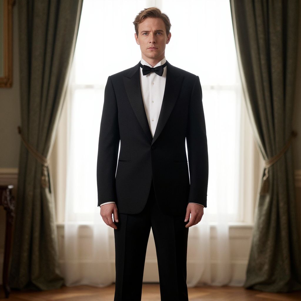 Strictly Ballroom Costume, man in a tuxedo standing in a room with a window