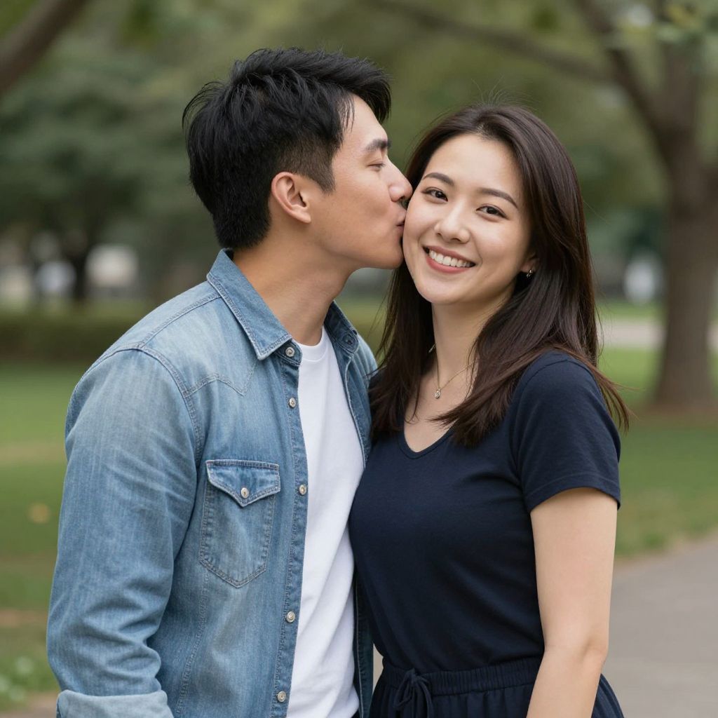 Romantic Outdoor Cheek Kiss