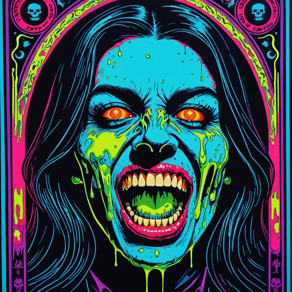50s Retro Zombie Pinup with Psychedelic Ink Splatter