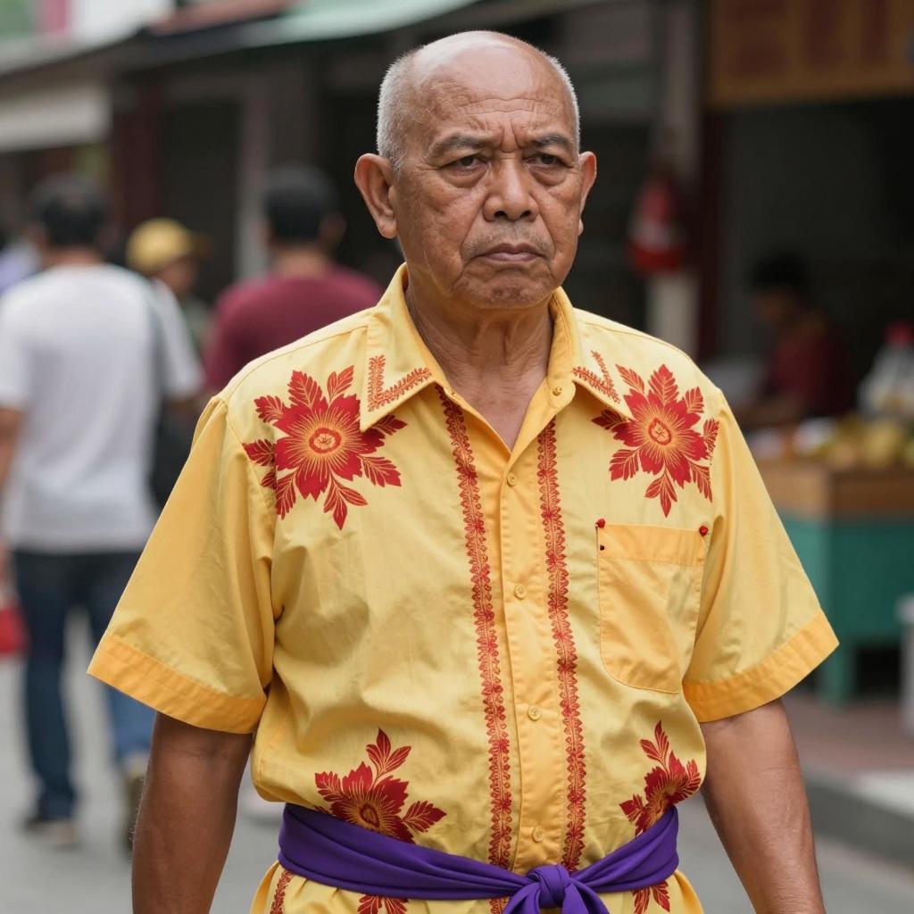 Elderly Southeast Asian Man in Traditional Malaysian Costume