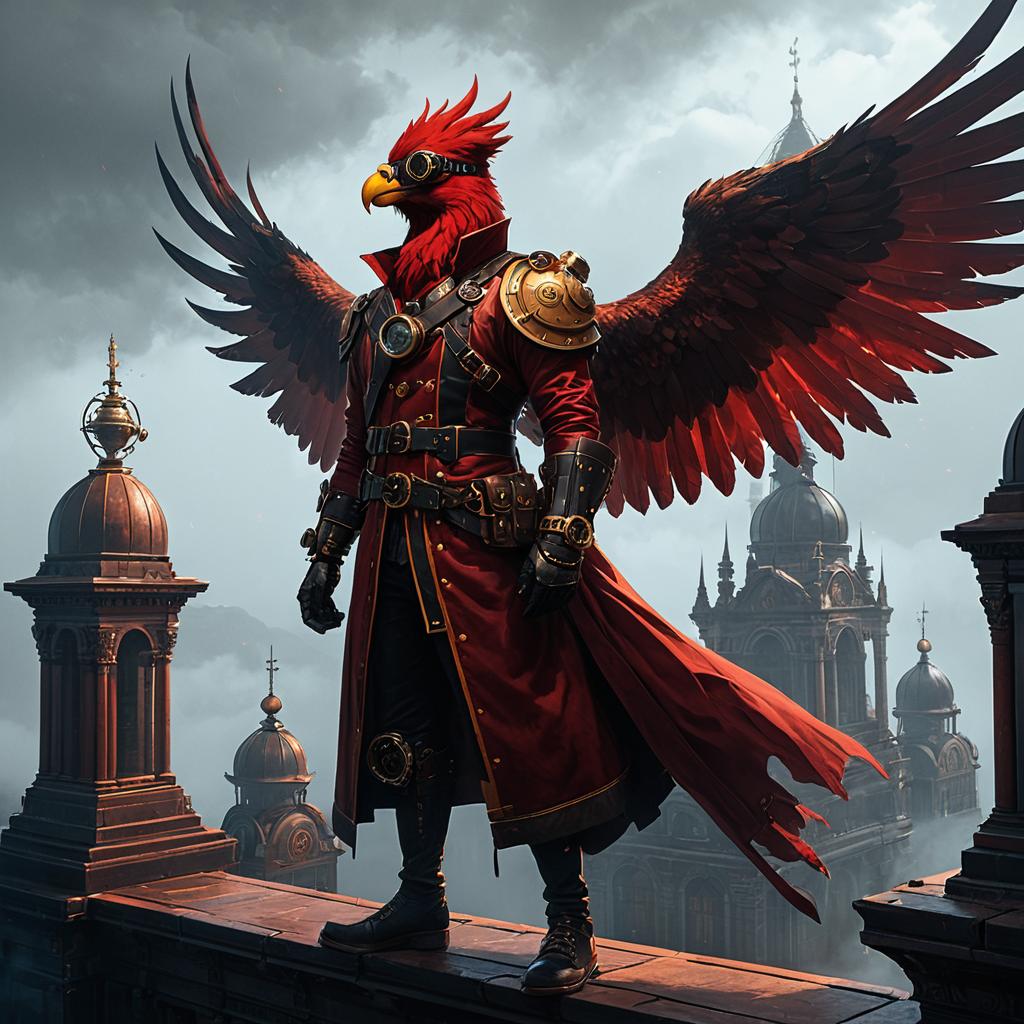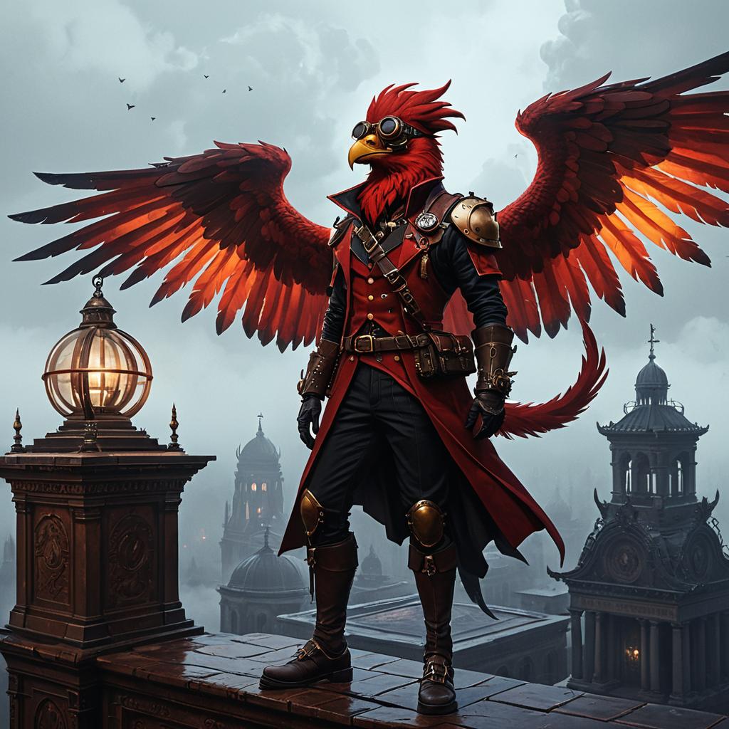 Anthropomorphic Griffon in Steampunk Attire on Rooftop