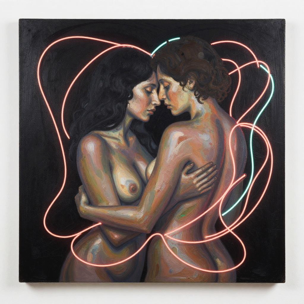 Explore the artistic journey of Julie Mehretu through complex and layered neon works that challenge societal norms, reflecting contemporary art's raw emotional landscape and the complexity of intimacy and desire.