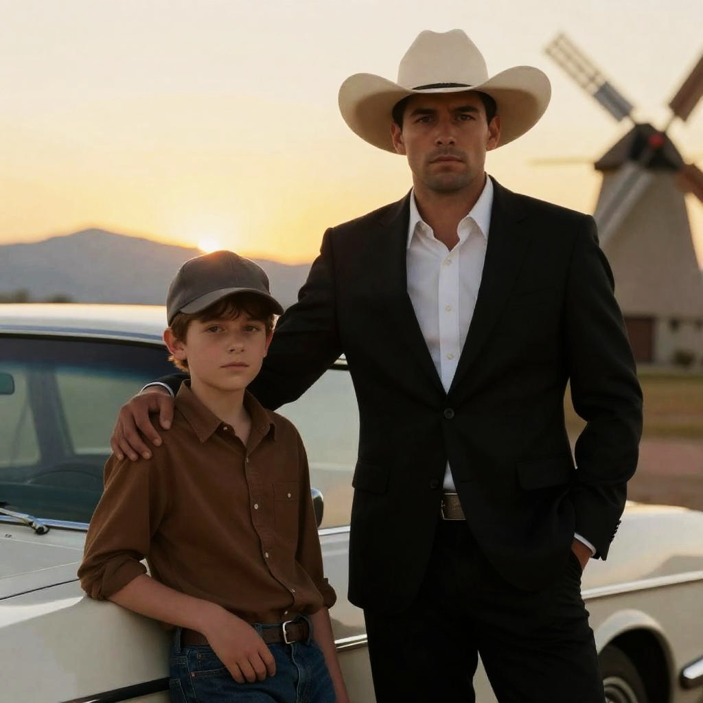 Serious Man and Boy with Gun