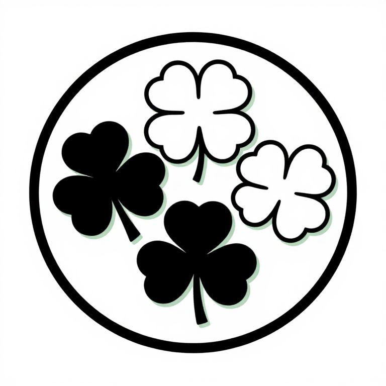 "Bluetooth simple logo of 3 Irish four leaf clovers in a circular illustration, black and white with a subtle green outline::5, 4 leafs clover::4, 3 clover::3, black and white :: by Lee Krasner,"