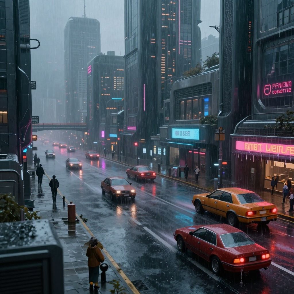 NESStyle futuristic city landscape with cars, concept art, wide angle, hyper realistic, artstation, moody, rainy, 4 k, volumetric lighting, melting, (smelt:0.8), (droop:0.7), (drip:0.6), ral-dissolve futuristic city landscape with cars, (soft:0.5), (Masterpiece:1.3) (best quality:1.2) (high quality:1.1)