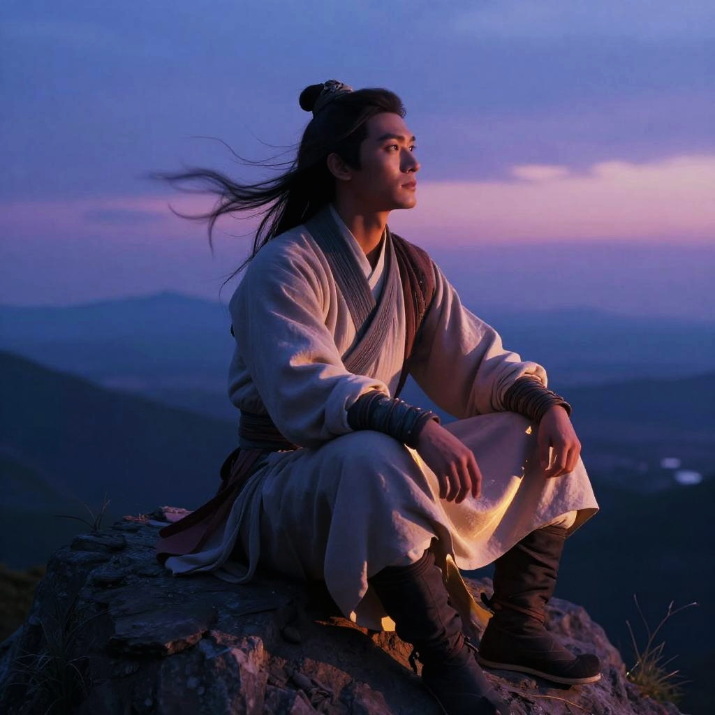Nostalgic Wuxia Warrior at Dusk