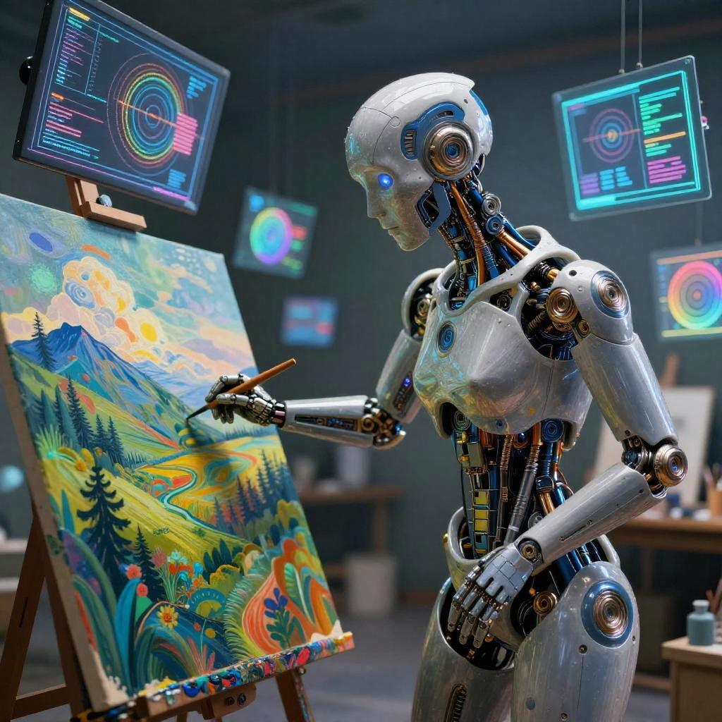 Cybernetic Painter Crafting Digital Landscapes