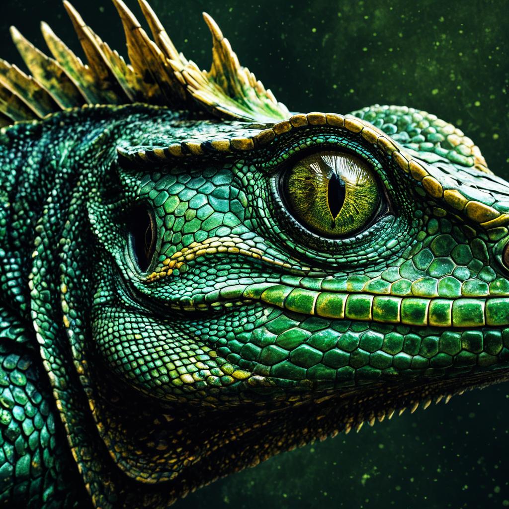 Close-Up of Green Basilisk Eye and Scales