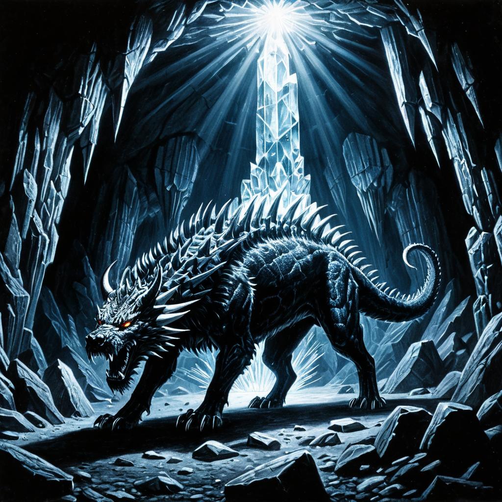 Airbrush drawing of a desolate wasteland, featuring a hybrid Yeti-Zombie with tattered clothing, hyper-realistic with torchlight.