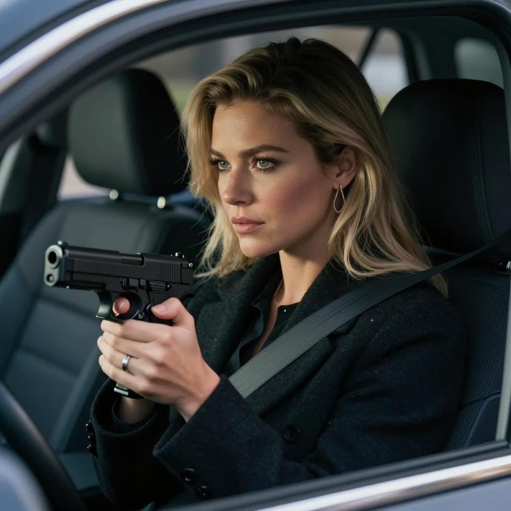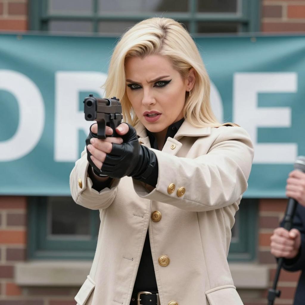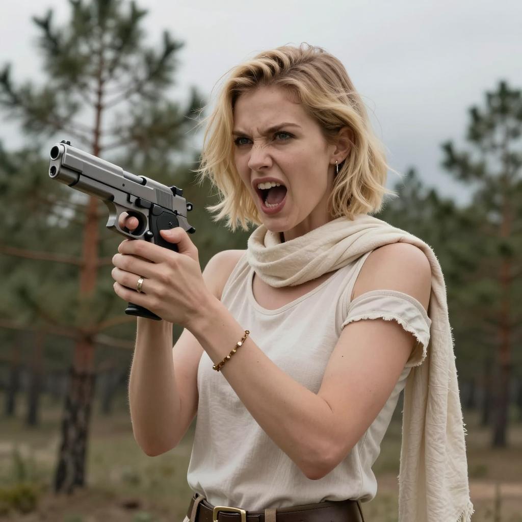 Blonde Woman Aiming Gun with Focus