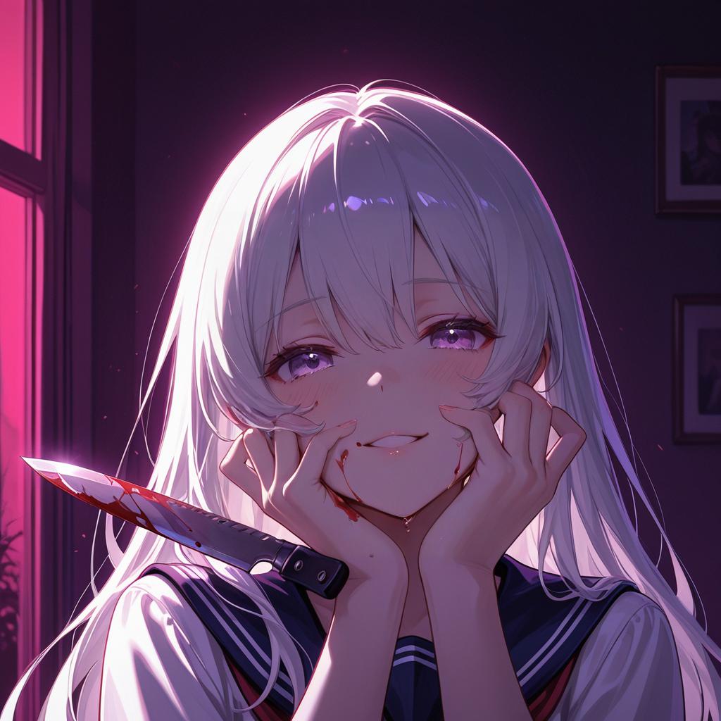 Anime Girl with White Hair and Purple Eyes