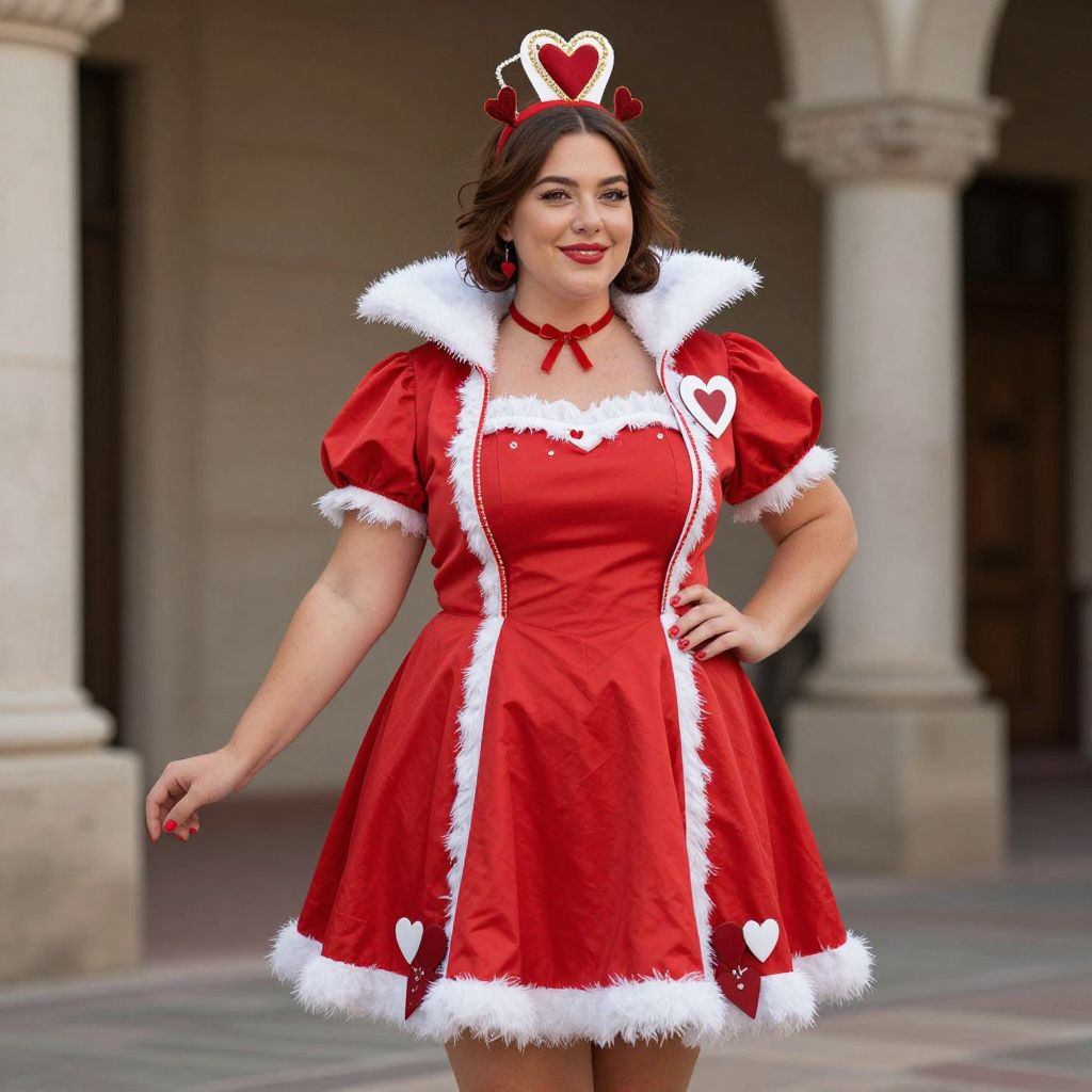 Queen Hearts Costume Plus Size, woman in a queen of hearts costume posing for a picture