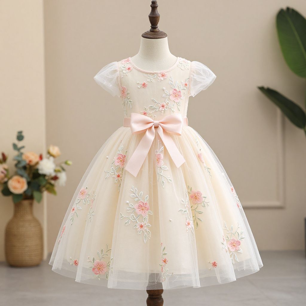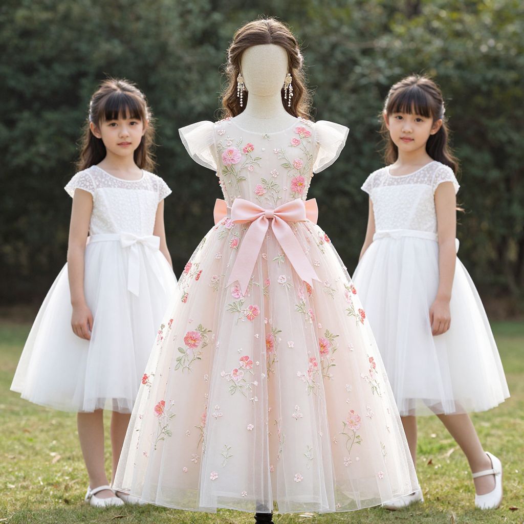 Princess Gown For Ladies Floral Ladies Gown Mesh Children Garments Bow Gown Little one Summer time Teen Woman Clothes four 6 8 12 Years Spring