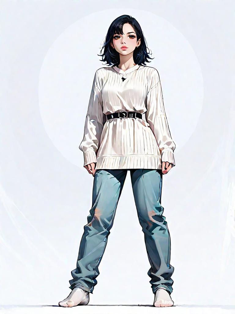 Woman in Oversized Shirt and Black Trousers